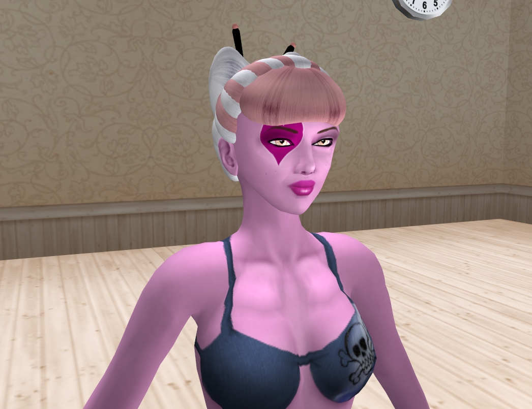 なかなか、おもしろい雰囲気のあるスキン。髪と目もついてます。