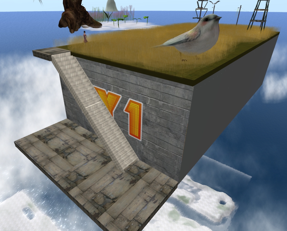 屋根から下りる階段を設置する事で、歩いてスカイボックスの中に入れる様にしました。
