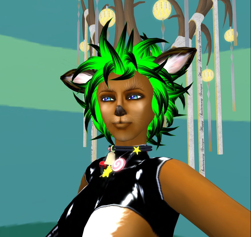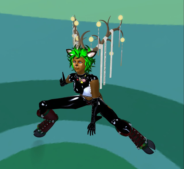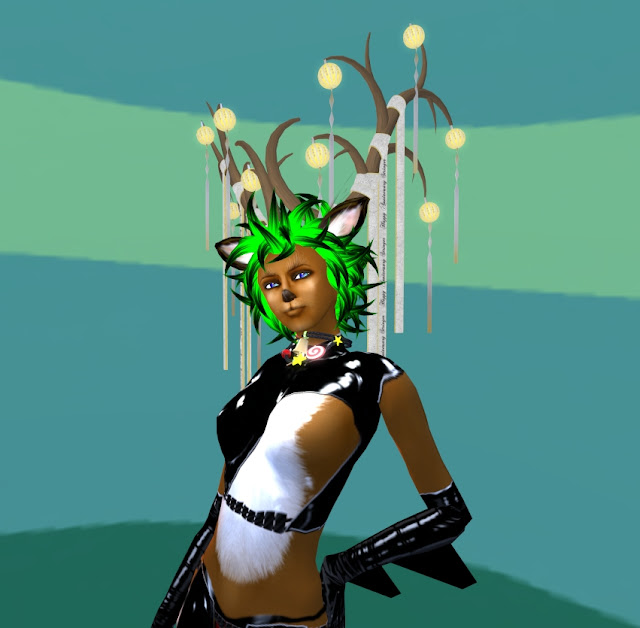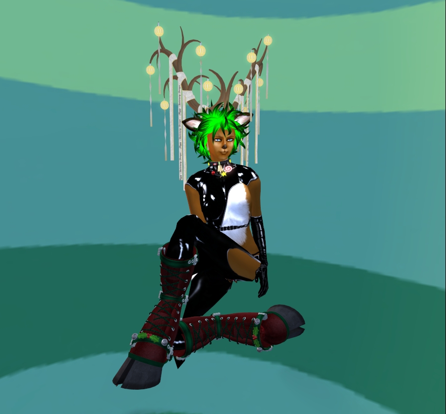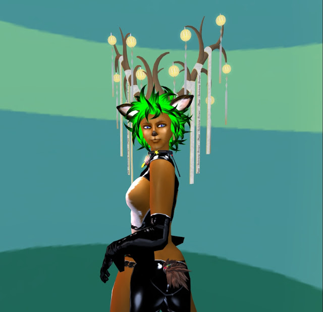 角とヘアはStringerの1周年記念のfreebie。髪は色をグリーンに染めています。