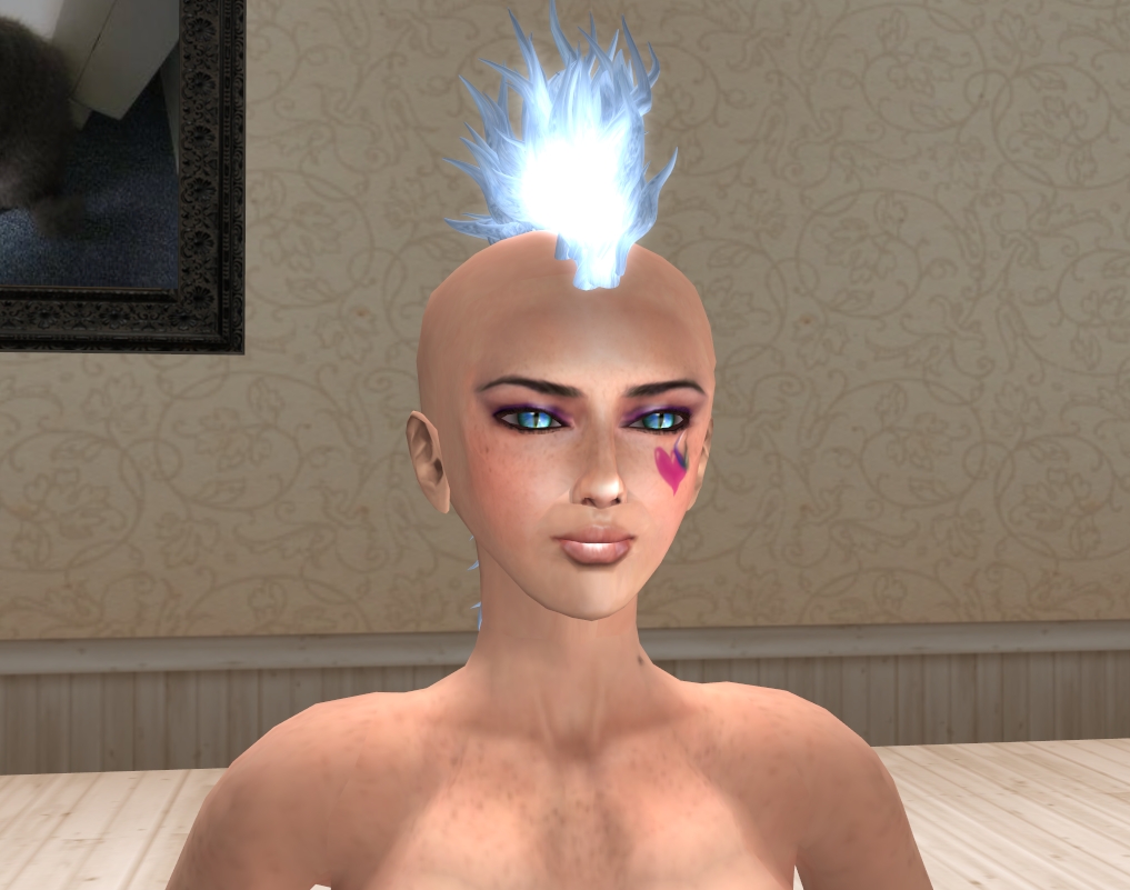 なかなか、おもしろい雰囲気のあるスキン。髪と目もついてます。